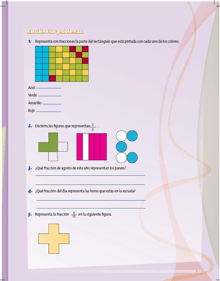 En la siguiente asesoría se retomo el mismo tema de la asesoría pasada, se hizo una retroalimentación del tema, el niño se acordaba de las fracciones. Una vez que el niño dijo que ya entendía, se le dio una hoja de ejercicios para que los resolviera (imagen 6.1), se le dieron 20 minutos para resolver los problemas. Después del tiempo dado se le dijo que entregara la hoja de ejercicios para revisarlos, el niño no tenia errores muy pequeños a comparación de cuando iniciamos el tema. Se hizo un ultimo repaso del tema y el niño logro comprender las fracciones y el como identificarlas.